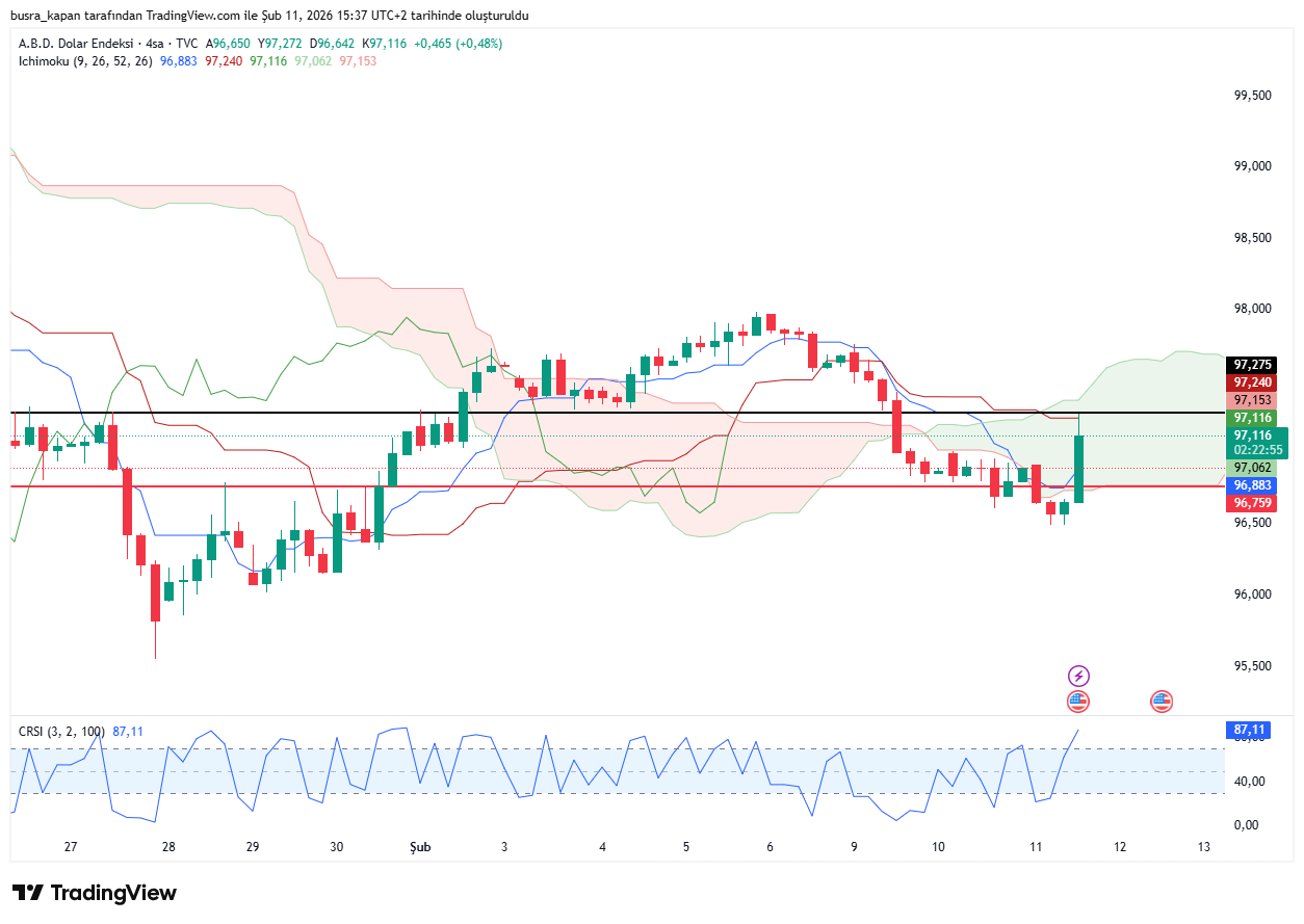 Dolar endeksi kritik istihdam rakamları öncesinde 96,75 seviyesinde bulunuyordu. Gelen verilerin ardından 97,27 seviyesinde bulunuyor.