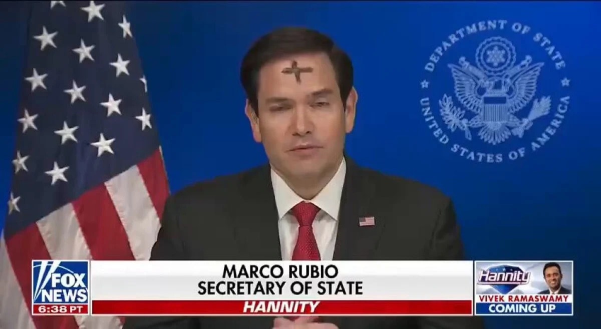 ABD Dışişleri Bakanı Marco Rubio, Fox News’te Sean Hannity'nin programına, alnında kül ile çizilmiş bir haç işaretiyle katıldı. Rubio, programda Ukrayna, Orta Doğu ve Başkan Donald Trump'ın Kongre’ye hitaben yaptığı son konuşma hakkında görüşlerini paylaştı.
