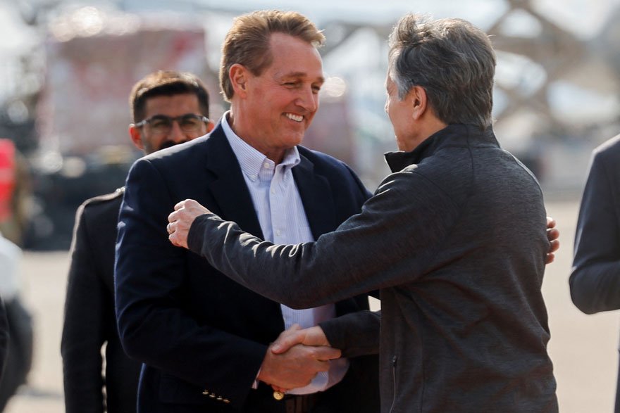 Blinken'ı ABD'nin Türkiye Büyükelçisi Jeff Flake karşıladı.Reuters haber ajansının paylaştığı fotoğraflarda Adana'daki İncirlik Hava Üssü'ne inen Blinken'i ABD'nin Türkiye Büyükelçisi Jeff Flake ve ABD personeli karşıladı.
