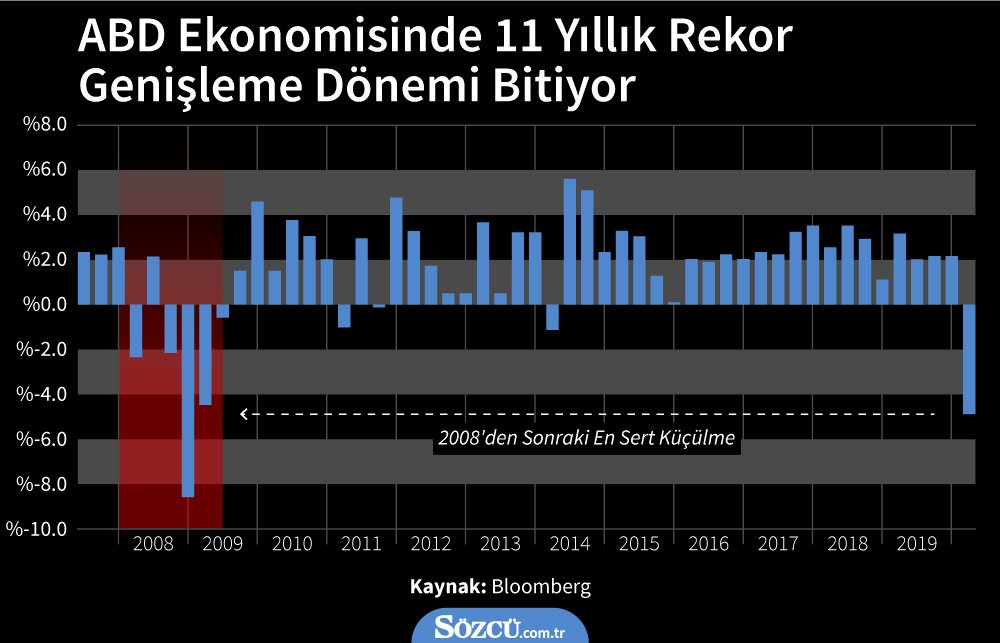 Dünyanın en büyük ekonomisinde yüzde 4,8'lilk küçülme, 2008'de başlayan finansal kriz sonrasındaki en sert daralma oldu. Bu ayrıca, ABD Başkanı Donald Trump dönemindeki ilk ekonomik küçülme oldu.