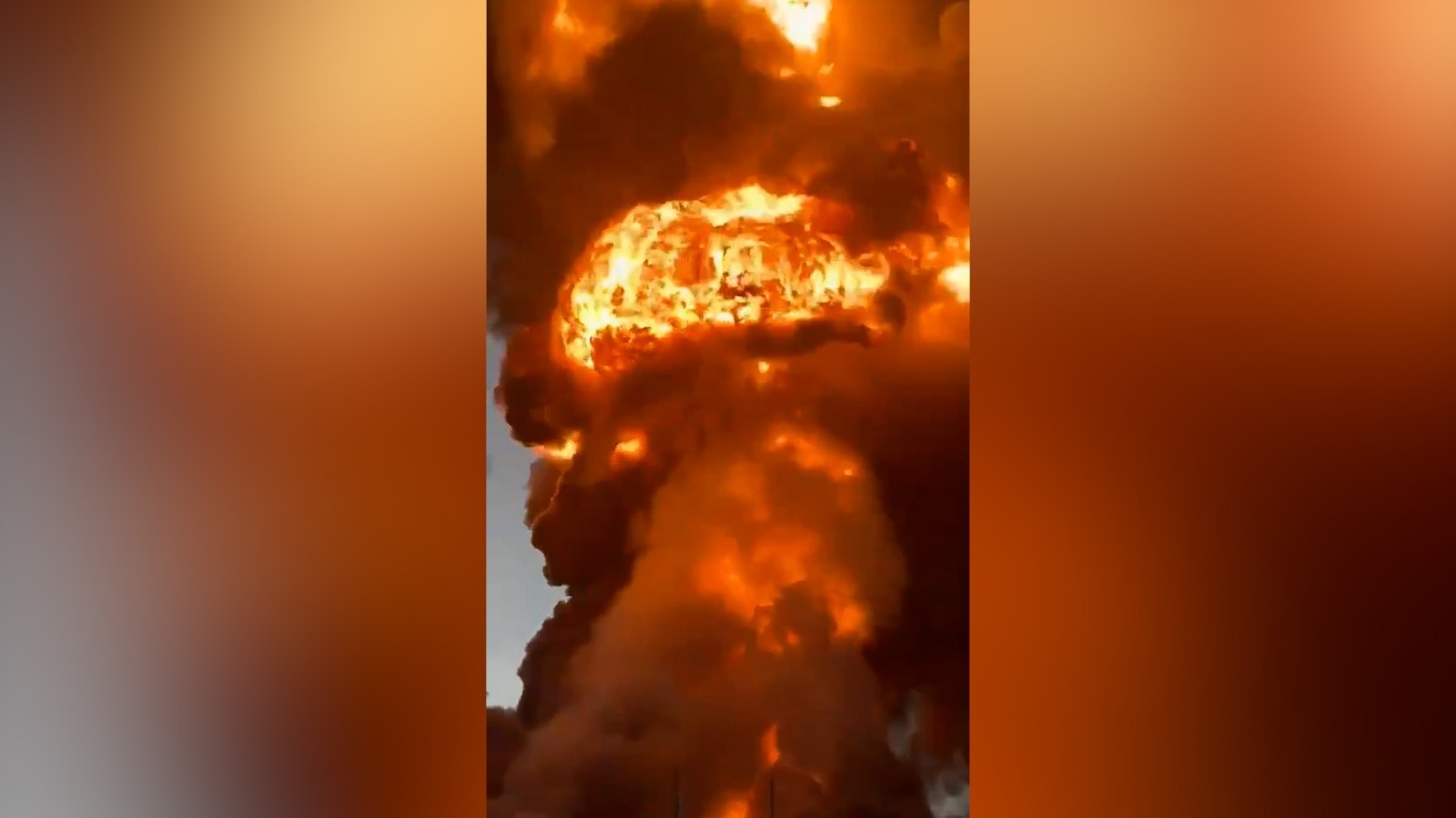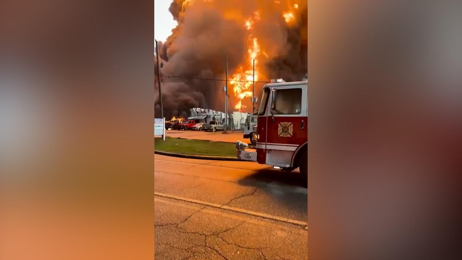 Yerel WBRZ kanalının çektiği görüntülerde, yağ ve otomotiv sıvıları üreten fabrikadan yükselen parlak turuncu alevler ile kara duman bulutu ile kaplandı.
