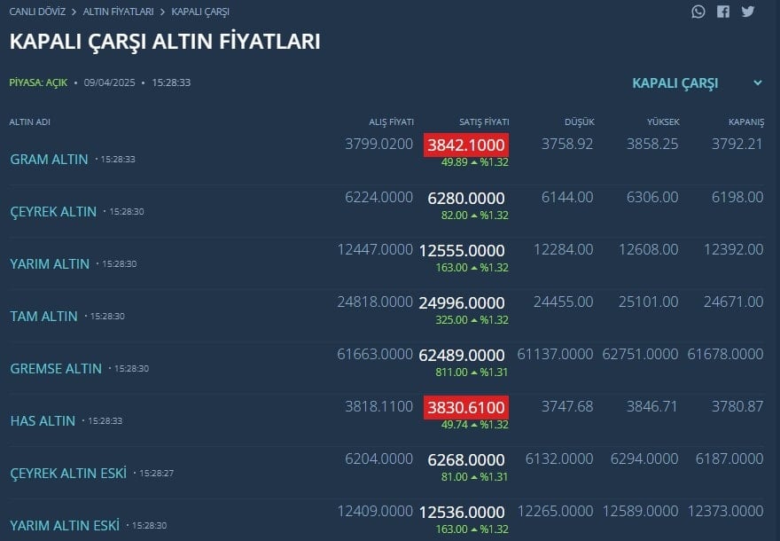 KAPALIÇARŞI ALTIN FİYATLARI