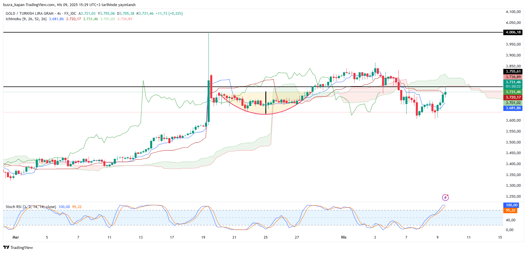 Gram altın dolar/TL kurundaki yatay seyir ve ons altındaki yükselişlerin etkisiyle yukarı yönlü hareketleniyor. Dünü 3 bin 613 lira ile 3 bin 677 lira aralığında geçiren gram altın günü 3 bin 639 liradan tamamladı. Yeni günde ise öğlen seansında 3 bin 755 liraya yükseldi. TSİ 15.26'da 3 bin 736 lirada bulunuyor.