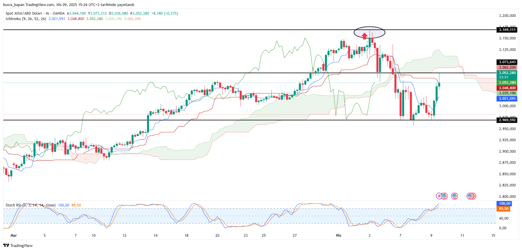 Dünü 2 bin 969 dolar ile 3 bin 24 dolar aralığında geçiren ons altın günü 2 bin 893 dolarda tamamladı. Yeni günde ise öğlen seansında 3 bin 73 dolara yükseldi. TSİ 15.26'da 3 bin 51 dolarda bulunuyor.