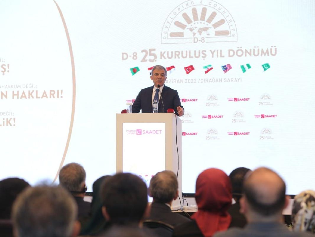 “D-8’in 25. kuruluş yıl dönümü vesilesiyle bir aradayız. O günleri hatırlıyorum. Değerli bakan arkadaşlarımızla hep beraber kabinede çalışmıştık. Değerli hocamız Necmettin Erbakan, sadece Türkiye’yi değil bütün İslam dünyasını düşünen, insanlığı düşünen, çok farklı bir şahsiyetti. Böyle bir organizasyonun kurulmasıyla ilgili fikirlerini geliştirdikten sonra bunu uygulamasını görevini kabinede bana vermişti. D-8’in kuruluşunda arka çalışmaları gerçekleştiren bir kişi olarak, 25. yılda burada olmam onu verici.