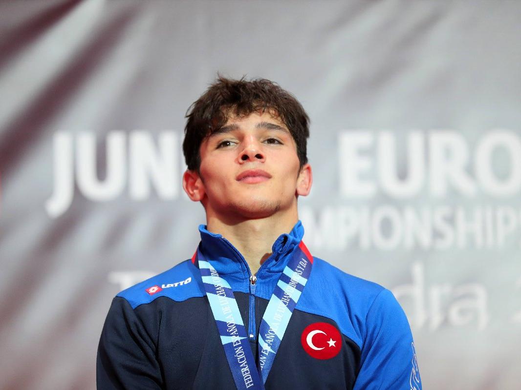 U23 Grekoromen Avrupa Güreş Şampiyonası'nda 72 kiloda mindere çıkan Abdullah Toprak gümüş madalya kazandı.