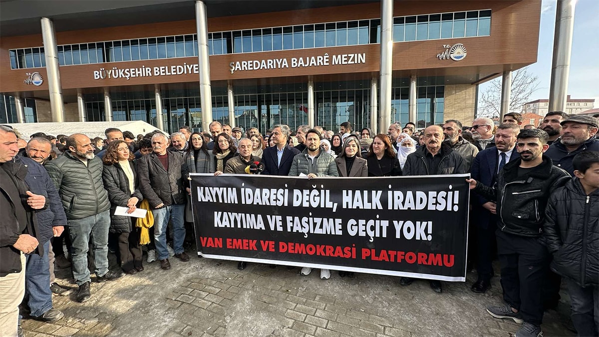 Van Büyükşehir Belediyesi önünde bir araya gelen Van Emek ve Demokrasi Platformu, "Direne Direne Direnişten Zafere" sloganı atarak Zeydan'a destek verdi. Platform adına yapılan açıklama şu şekilde: