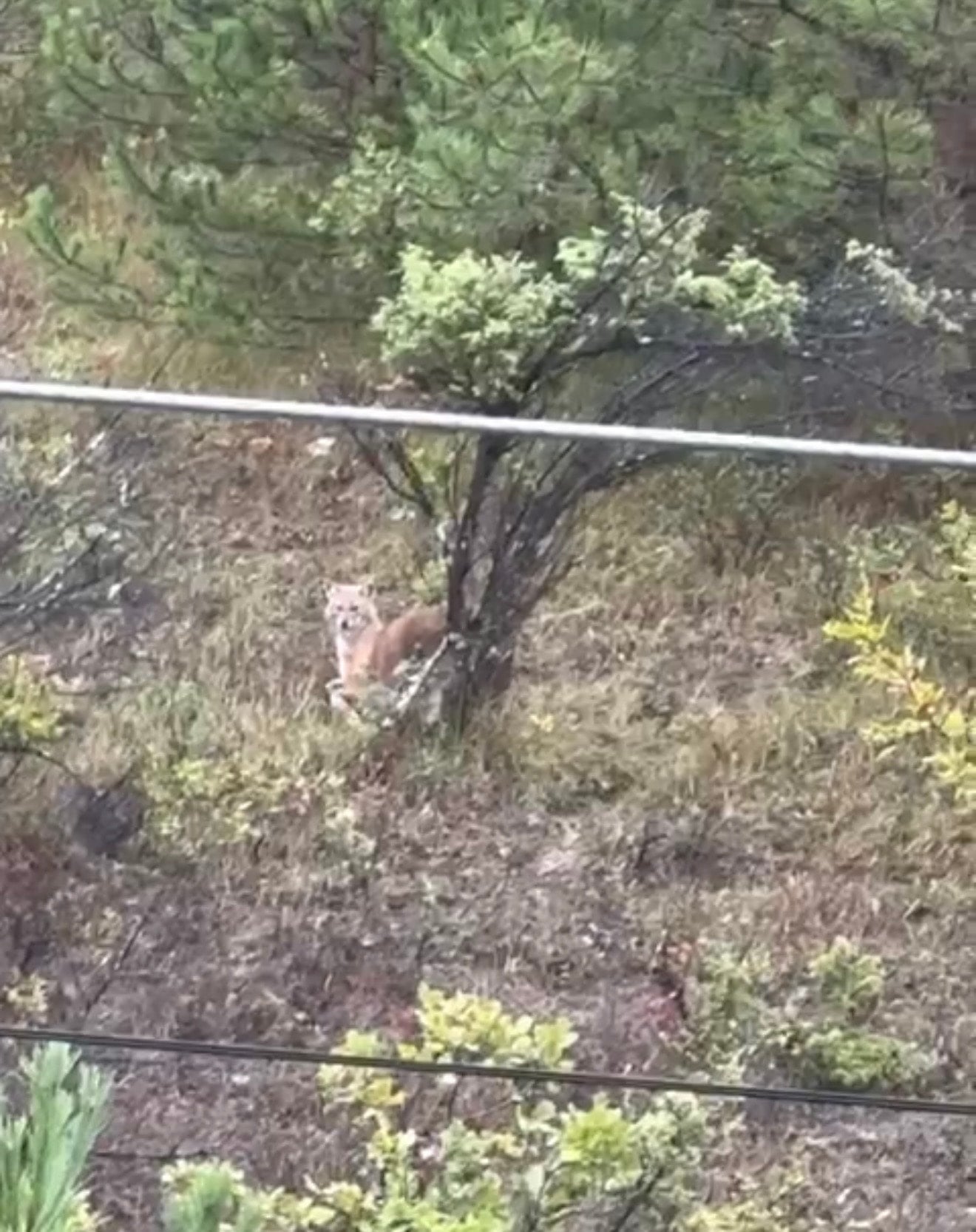 Yiyecek aramak için kent merkezine indiği belirtilen kurtlar, bir süre bir ağacın yanında bekledikten sonra ormana girerek gözden kayboldu.