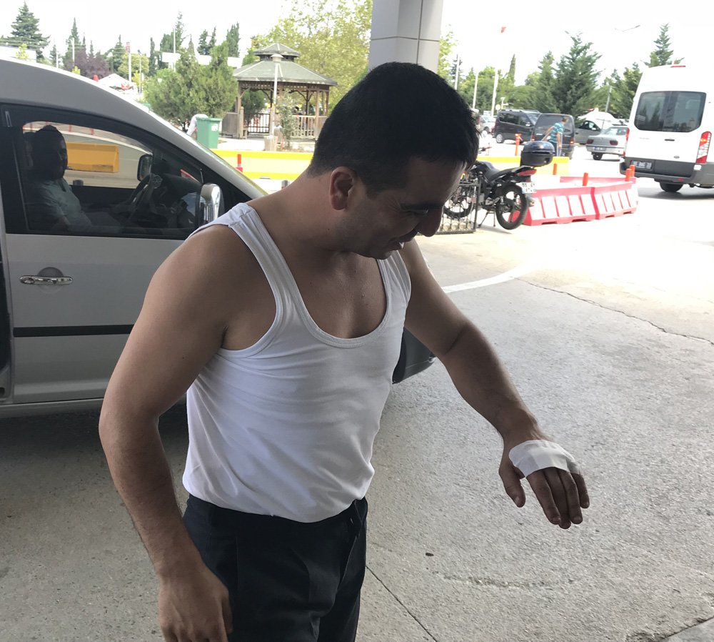 Kesim yaptığı sırada kurbanlığın kaçmaya çalışmak istemesiyle bıçağı eline saplayan ve ardından tedavi için hastaneye gelen Ali Şimşek, "İstemeden oldu. Hayvan kaçınca bıçak elimize saplandı, ama ciddi bir durum yok" dedi. (Ajanslar)