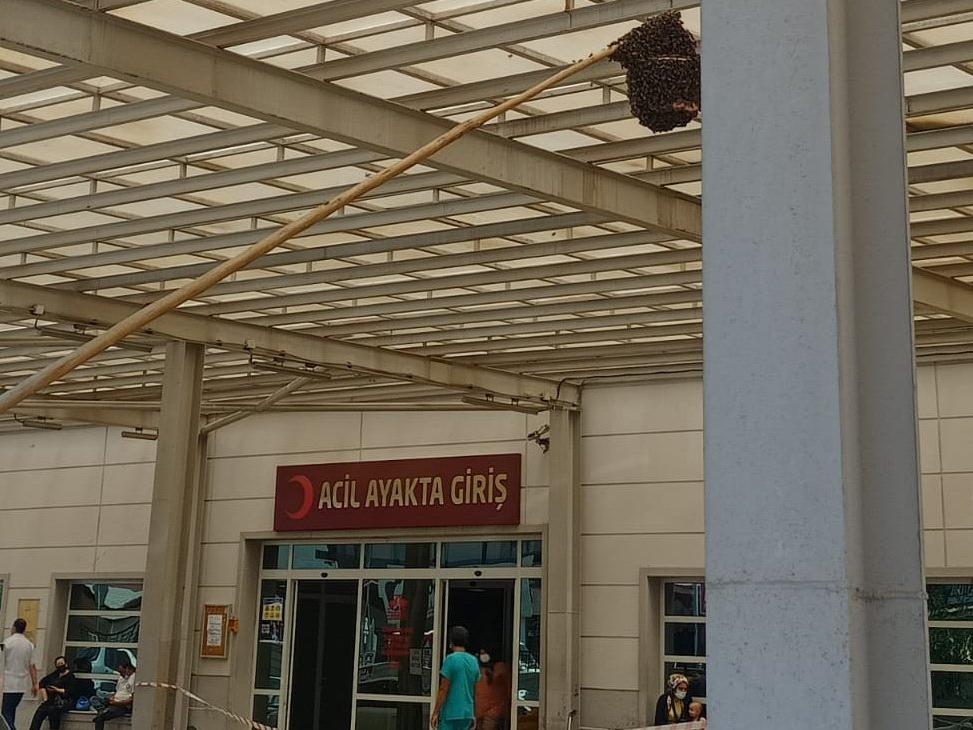 Hastane güvenlik görevlilerinin haber vermesi ile bölgeye Aydın Büyükşehir Belediyesi Nazilli İtfaiye Amirliği ekipleri sevk edildi. Bölgeye gelen ekipler acil girişin çatı kısmında oğul veren arıları toplamak için harekete geçti.