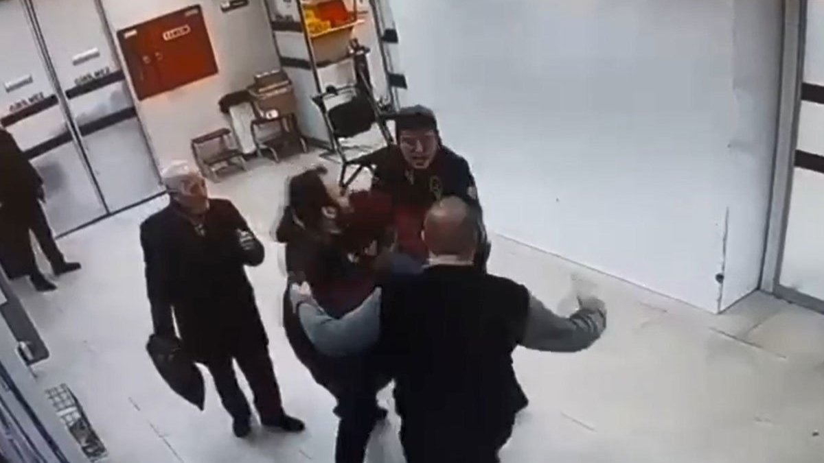 Öte yandan olay anı ise hastanenin güvenlik kamerasına yansıdı. Görüntülerde taraflar arasında arbede çıktığı, kadın bir güvenlikçinin araya girerek olayı önlemeye çalıştığı anlar yer alıyor. (DHA)