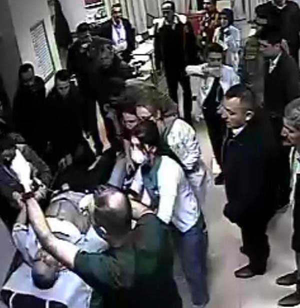 Yaralanan Şakşak acil servise kaçarak doktorların odasına sığındı. Bunun üzerine silahla servise girerek yaraladığı güvenlik görevlisini bu kez bacağından vuran Ali D., serviste büyük panik yaşanmasına neden oldu. Silahlı saldırganı gören sağlık çalışanları ve hastalar etrafa kaçışırken, olay anı hastanenin güvenlik kameraları tarafından saniye saniye görüntülendi.