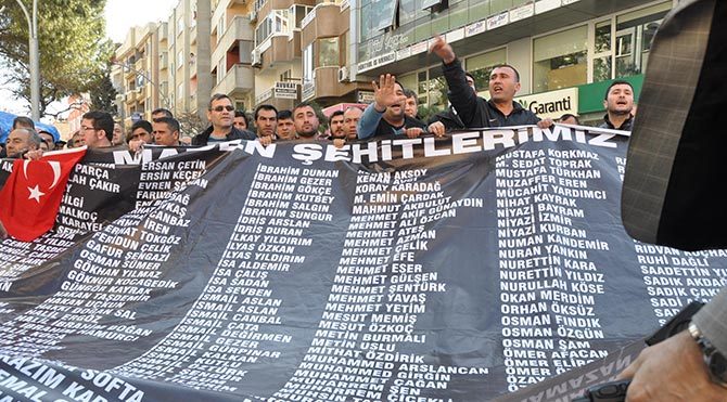 Manisa'nın Soma İlçesi’nde, 301 kişinin öldüğü facianın ardından işten çıkartılan madenciler, tazminatlarının hala ödenmediğini söyleyerek, ölen arkadaşlarının isimleri yazılı dev pankart eşliğinde Ege Linyitleri İşletmesi Müessesesi Müdürlüğü (ELİ) önüne yürüyüş düzenledi. Burada ELİ Müdürü ile görüşmek isteyen grup, bu gerçekleşmeyince oturma eylemine başladı.