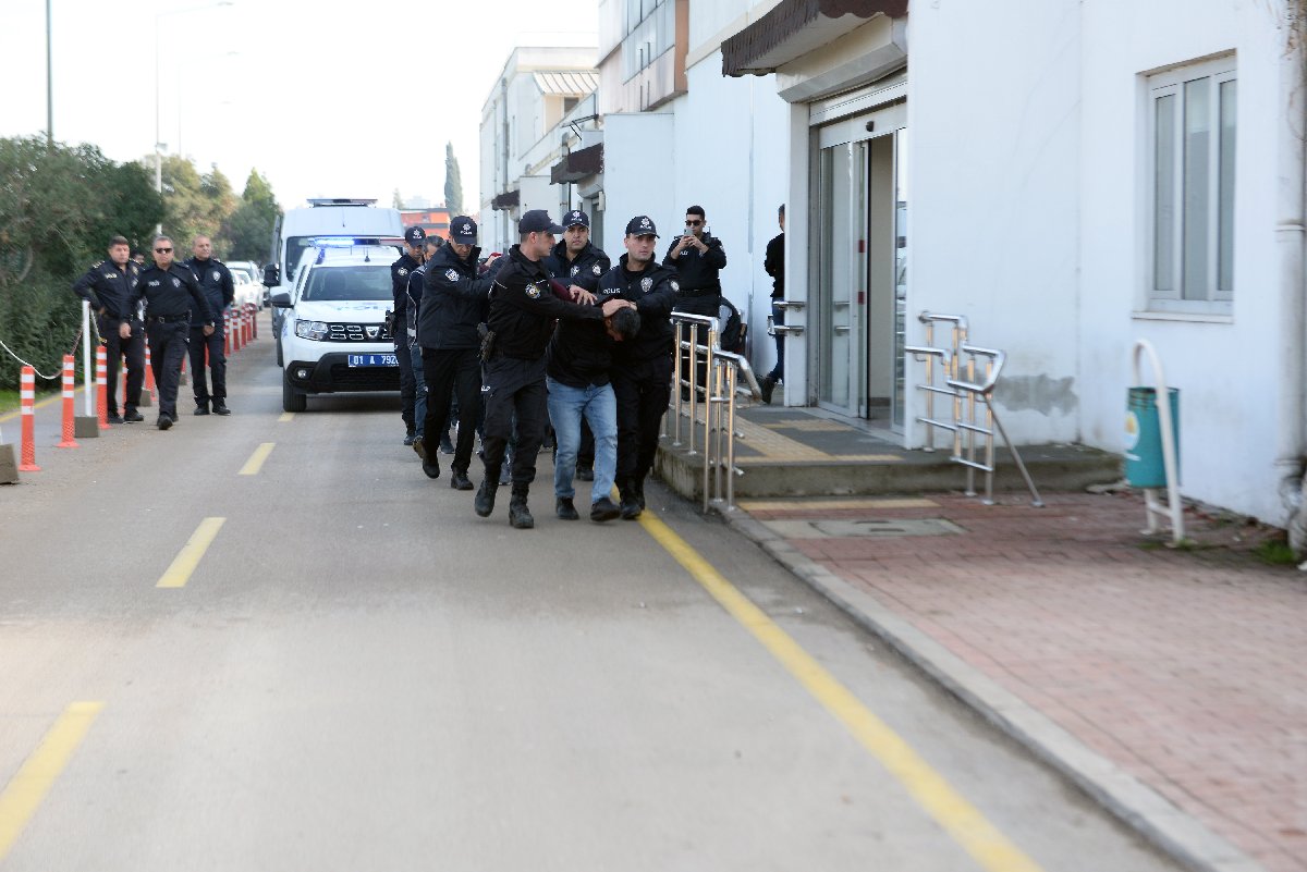 Polis merkezindeki işlemleri tamamlanan şüpheliler, Adana Adli Tıp Kurumunda sağlık kontrolünden geçirildikten sonra adliyeye sevk edildi. Mahkemeye çıkarılan şüphelilerden 5i tutuklandı, 1 kişi ise serbest bırakıldı. (DHA)