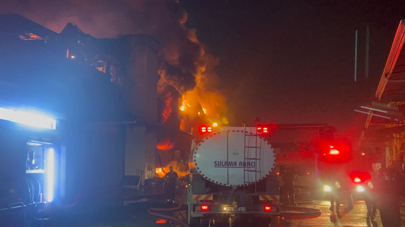 Yangına müdahale eden itfaiye ekiplerine, İl Emniyet Müdürlüğü’ne bağlı Toplumsal Olaylara Müdahale Aracı (TOMA) da destek veriyor. Söndürme ve soğutma çalışmaları devam ediyor.