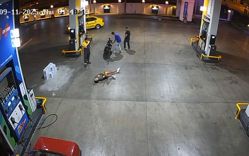 İhbar üzerine bölgeye polis ve sağlık ekipleri sevk edildi. Ayyıldız, hastaneye kaldırılarak tedaviye alındı. Olay, akaryakıt istasyonunun güvenlik kameralarına yansıdı.