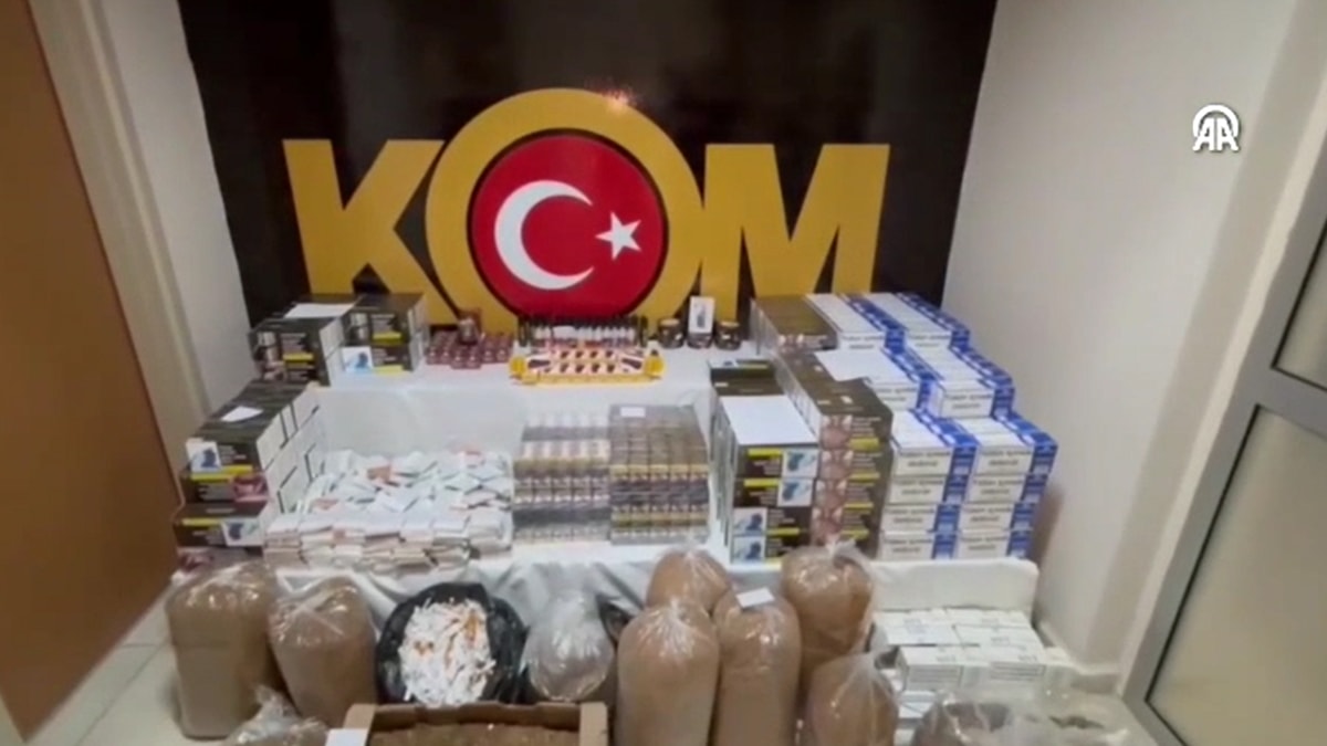 Adreslerde, 4 bin 280'i doldurulmuş toplam 55 bin 580 makaron, 80 kilogram kıyılmış tütün, 500 gram nargile tütünü, 430 paket sigara, 30 elektronik sigara, 19 sigara sarma makinesi ele geçirildi.