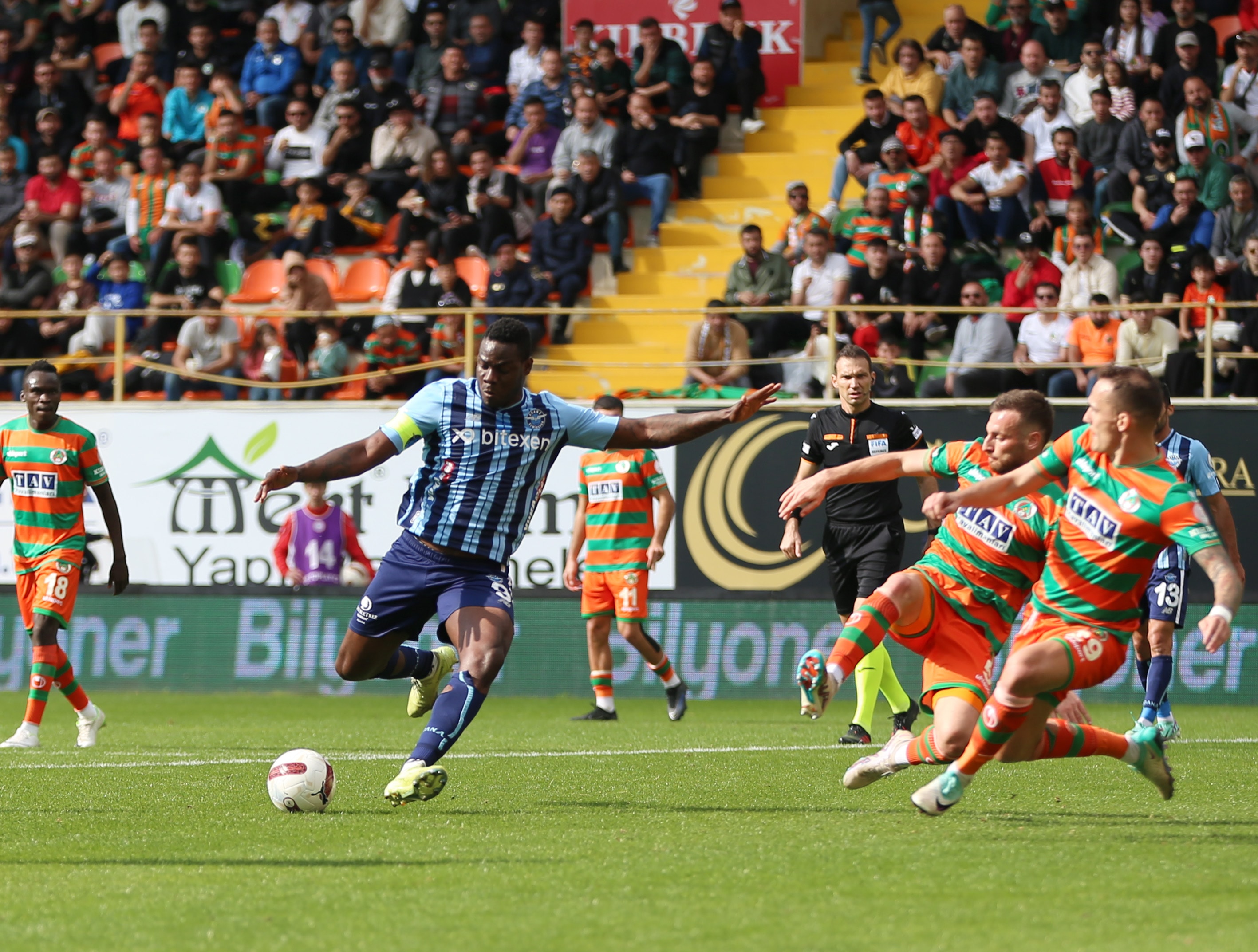 Süper Lig’in 26’ıncı haftasında Alanyaspor, sahasında Adana Demirspor ile 3-3 berabere kaldı. İlk yarısı 2-0 ev sahibi Alanyaspor'un üstünlüğü ile geçilen maçta ikinci yarıda da tam 4 gol çıktı. Adana Demirspor puanı 90+7'de Yusuf Sarı'nın golüyle almayı başardı.