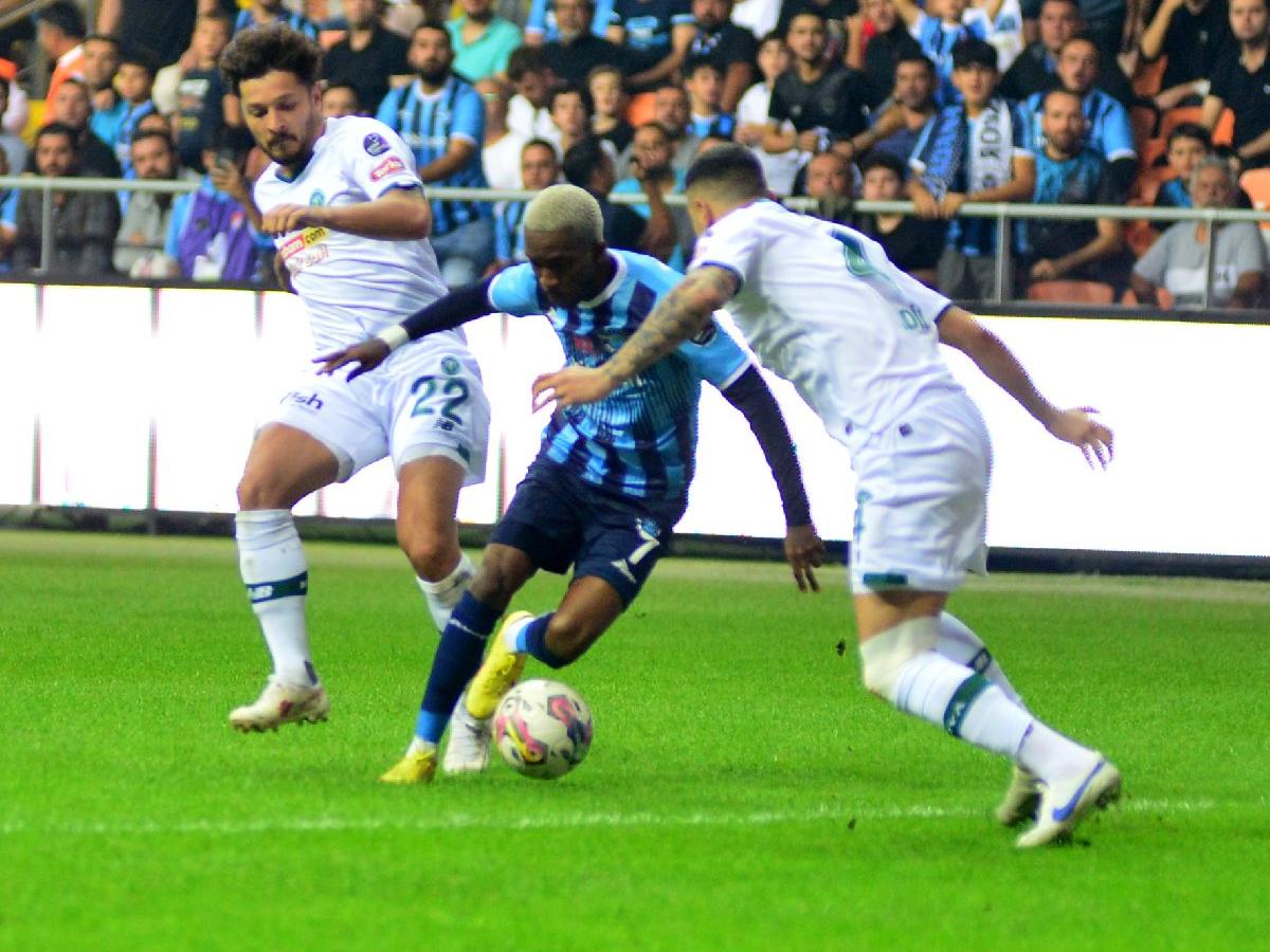 - 14' Sol kanattan atak geliştiren Adana Demirspor'da Onyekuru, topu yanındaki Rodrigues'e çıkarttı. Rodrigues'in yerden sert pasında müsait pozisyondaki Akintola kötü vurdu ve top auta gitti.