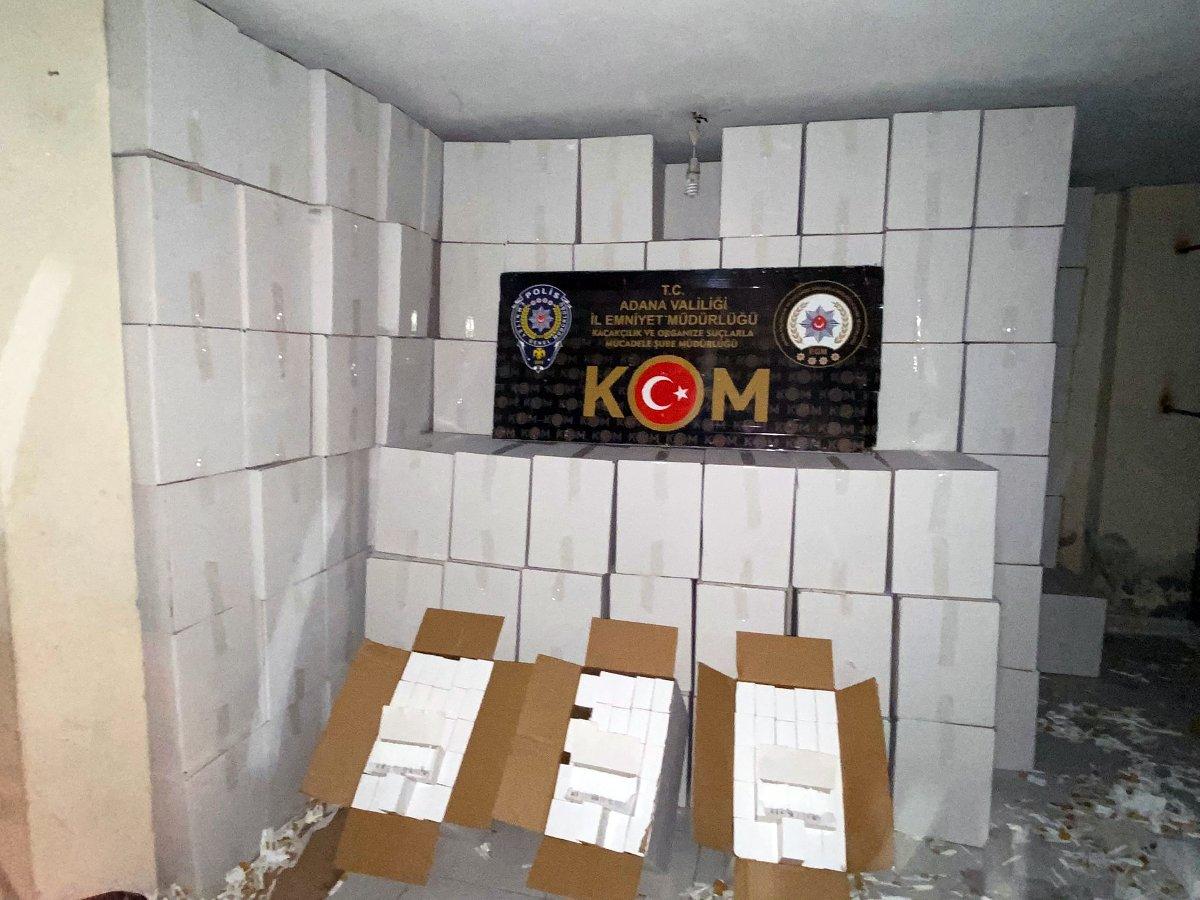 Adreslerde ve araçlarda yapılan aramalarda gümrük kaçağı 41 milyon 600 bin makaron, 216 bin doldurulmuş sigara, 780 litre etil alkol ele geçirildi. Operasyonlarda gözaltına alınan 6 şüpheli, sorgulanmak üzere emniyete götürüldü. (DHA)