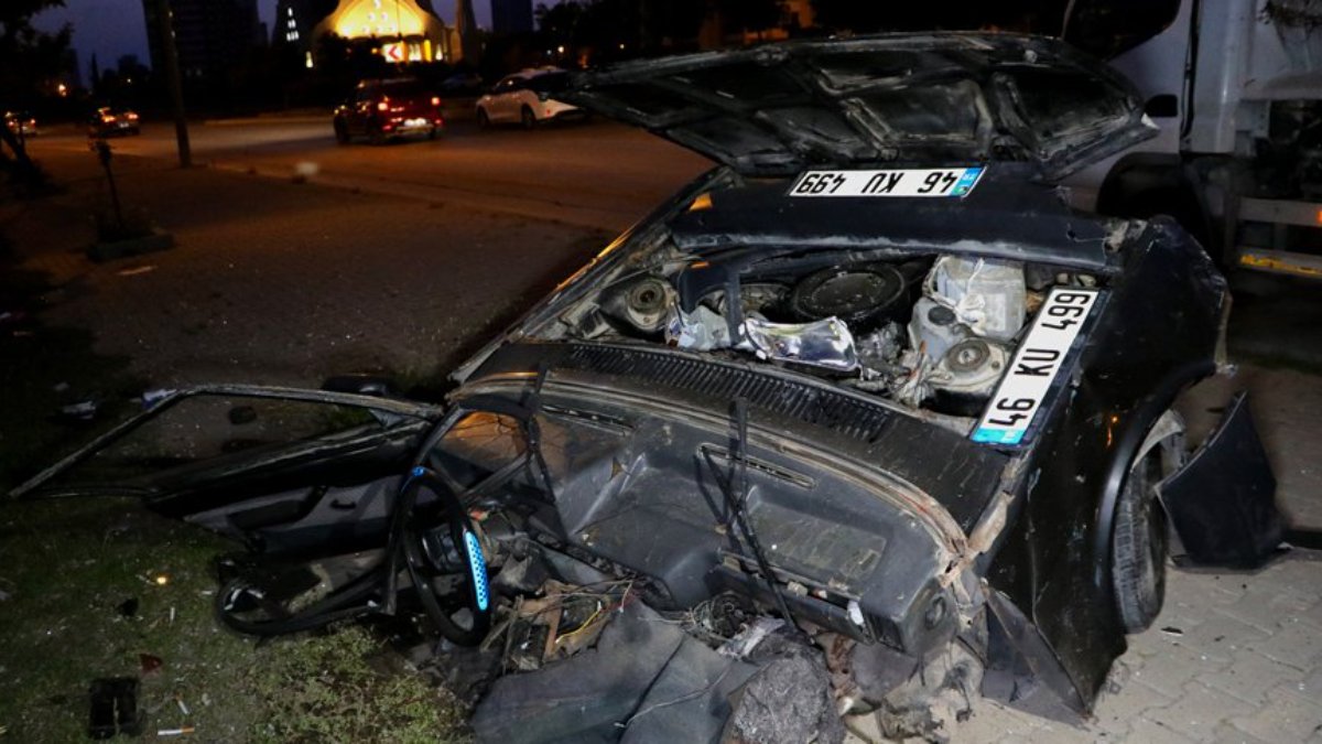 Adana'da kontrolden çıkan otomobil aydınlatma direğine çarpıp ikiye bölündü, sürücü yaşamını yitirdi.