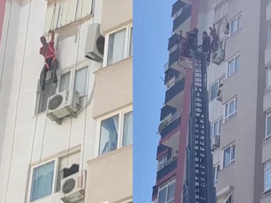 İşçinin, emniyet kemeriyle 11'nci kattaki halatta asılı kaldığını görenler itfaiye ekiplerine haber verdi. İşçi emniyet kemeri olduğu için yere düşmekten kurtuldu.