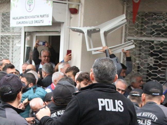 HDP'liler, harekatı protesto için Çukurova İlçe Başkanlığı bahçesinde toplandı. Çevrede güvenlik önlemi alan polis ekipleri de gruba bina içinde basın açıklaması yapmaları gerektiğini bildirdi.
