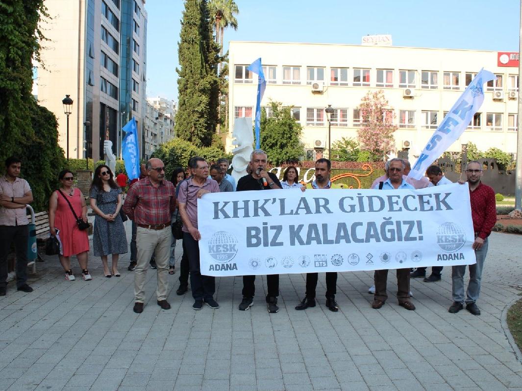 Kamu Emekçileri Sendikası Konfederasyonu (KESK) Adana Şubesi, son dönemlerdeki gözaltı ve tutuklamalara dikkat çekmek için Heykelli Park'ta basın açıklaması yaptı.