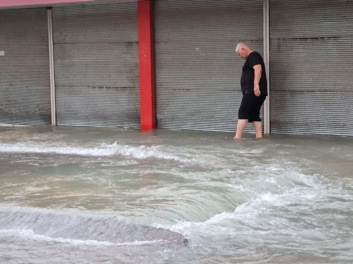Bu arada, su borusunun patladığı anlar çevredeki bir iş yerinin güvenlik kamerasına yansıdı. Görüntülerde, patlayan borudan çıkan suyun basıncıyla yolun yarıldığı, ardından başlayan taşkınla caddenin sular altında kaldığı görüldü. (DHA)