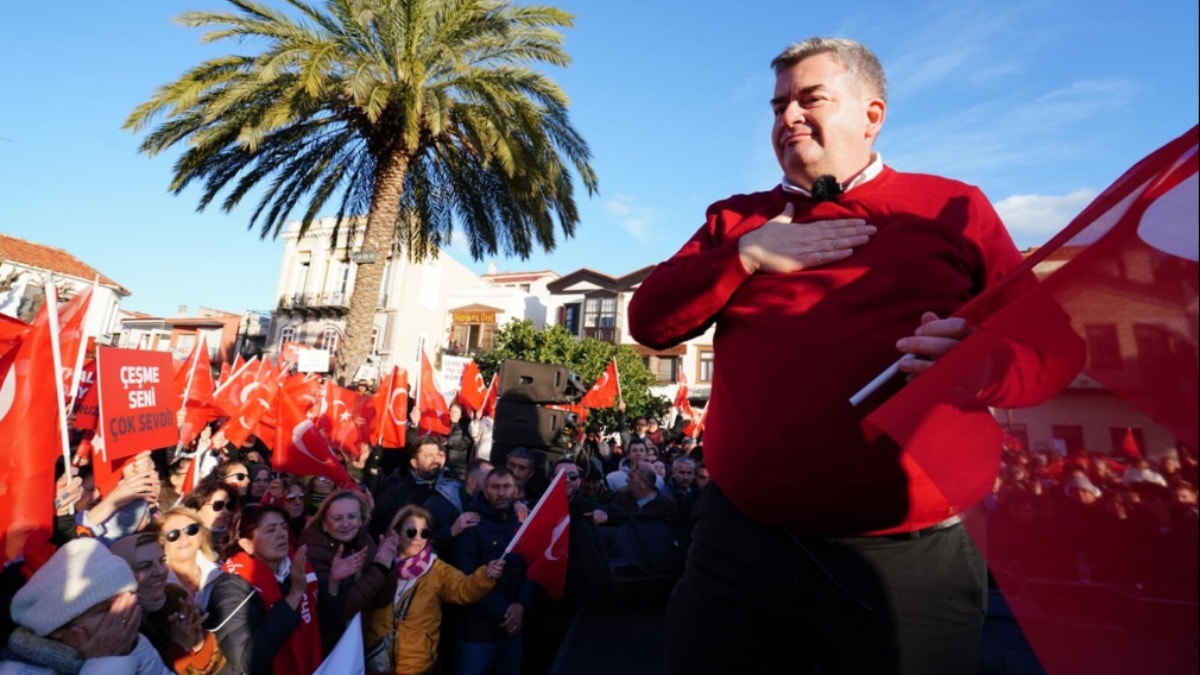 Cumhuriyet Halk Partisi'nde geçtiğimiz günlerde açıklanan İzmir Büyükşehir Belediyesi ve ilçe belediye adayları sonrası yeniden aday gösterilmeyen Çeşme Belediye Başkanı Ekrem Oran, Çeşme Meydanı'nda miting düzenledi.