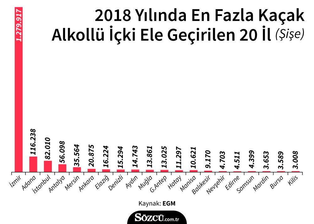 Emniyet Genel Müdürlüğü Kaçakçılık ve Organize Suçlarla Mücadele Dairesi Başkanlığı verilerine göre, son yıllarda yakalanan kaçak alkollü içki miktarları hızla artıyor.