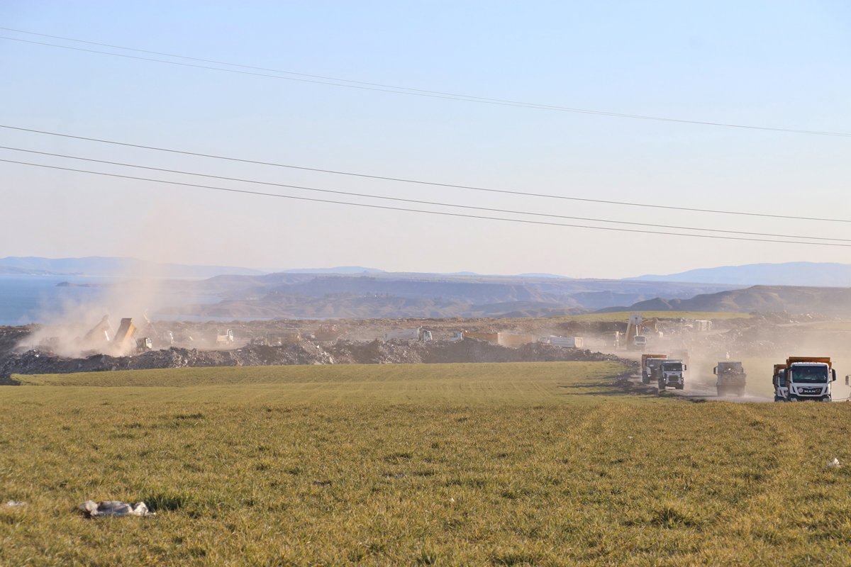 Molozların bir kısmı da kentin diğer çıkış noktası olan Şanlıurfa yolu üzerinde bulunan organize sanayinin karşısındaki boş bir araziye dökülüyor. (DHA)