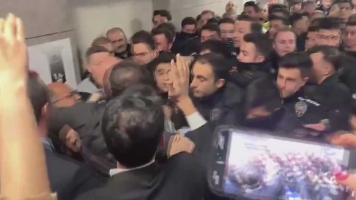 Türkiye Belediyeler Birliği ve İstanbul Büyükşehir Belediye Başkanı Ekrem İmamoğlu, tutuklama talebiyle mahkemeye sevk edilirken polislerin adliye koridorunda kurduğu barikat gerilime neden oldu.