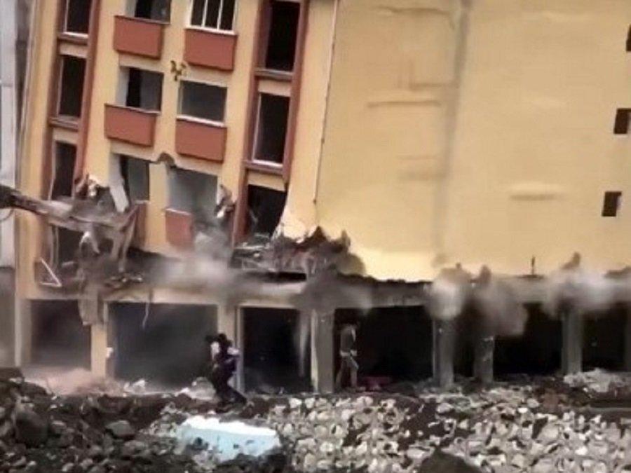 Sel felaketinin yaşandığı Bozkurt’ta dere yatağı içerisinde kaldığı gerekçesiyle Ezine Çayı kenarındaki binaların yıkımına devam ediliyor. Yıkma işlemi sırasında aniden çöken bir apartmanın yanında bekleyen kişiler, son anda kaçarak enkazın altında kalmaktan kurtuldular. Vatandaşların kaçış anı ile binanın aniden yıkılması çevrede bulunan bir şahsın cep telefonuna anbean yansıdı.