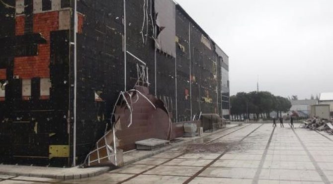 Saatteki hızı zaman zaman 130 kilometreye ulaşan lodos nedeniyle Afet Eğitim Merkezi binasındaki dış cephe kaplamaları yerinden söküldü. Sökülen demir ve tahta parçaları binanın bulunduğu bahçeye yayıldı. Valilik yetkilileri binada hasar tespit çalışmalarına başladı.