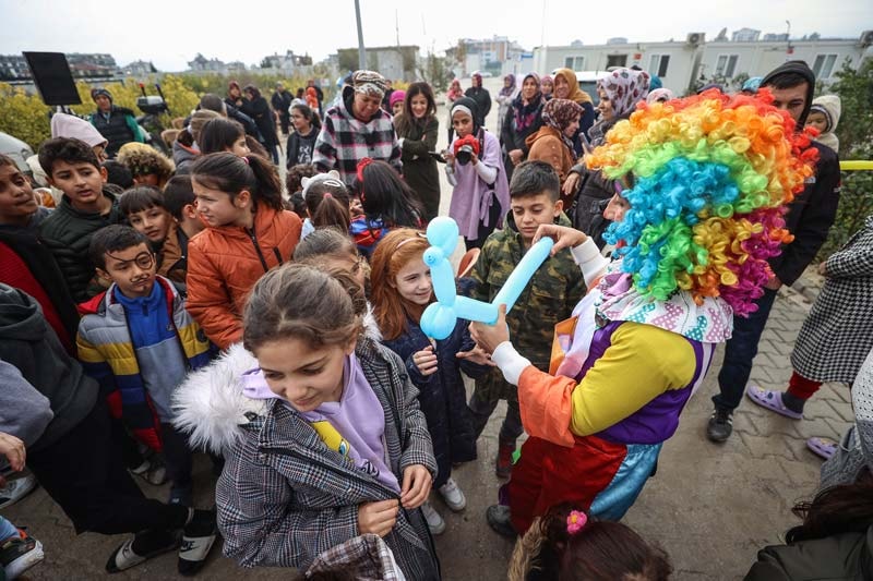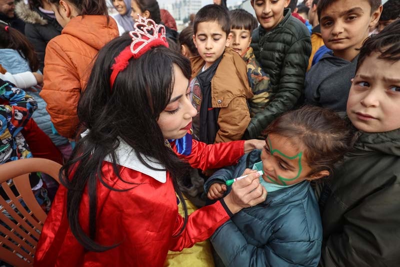 Aralarında depremlerden etkilenenlerin de bulunduğu ekip, çocuklara moral vermek ve afetin psikolojik izlerini silmek için yüz boyamadan dansa ve oyunlara kadar birçok etkinlik yapıyor.