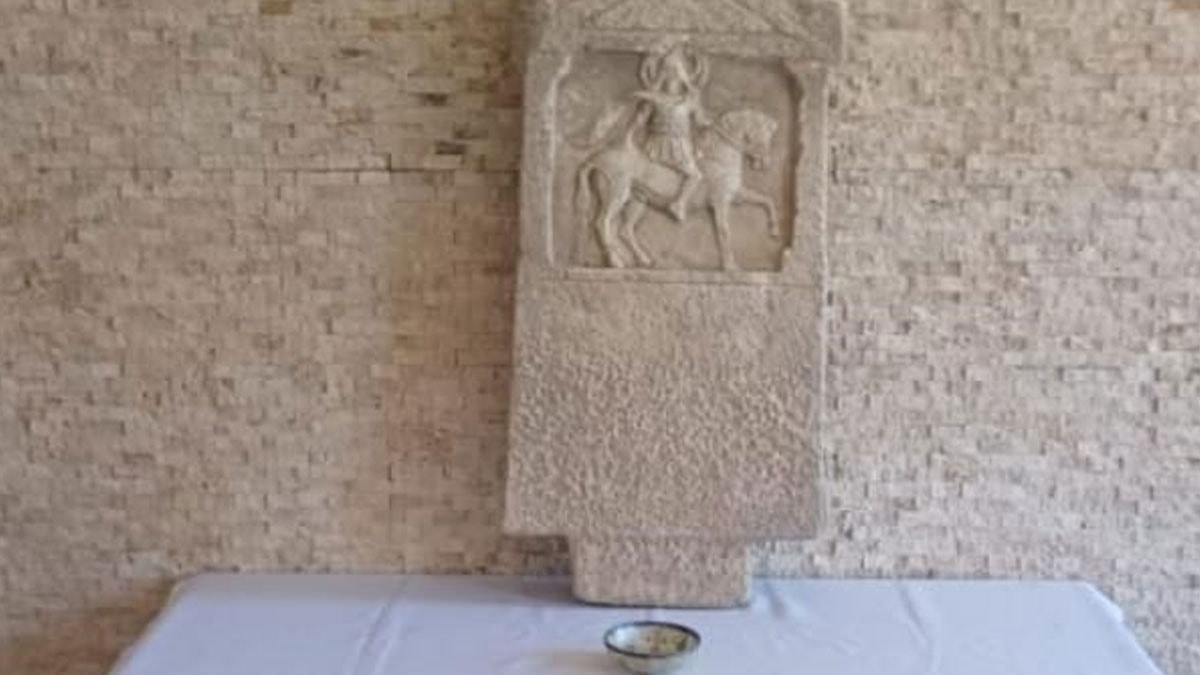 Ekiplerce şüphelilerin araçlarında yapılan aramada, bir mezar steli ve bir cam kase ele geçirildi.