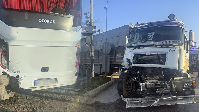 İ.Y. idaresindeki tır, ilçenin Cami Kebir Mahallesi Denizli Caddesi Opet Kavşağı'nda, M.Ö. yönetimindeki tur otobüsüne çarptı.