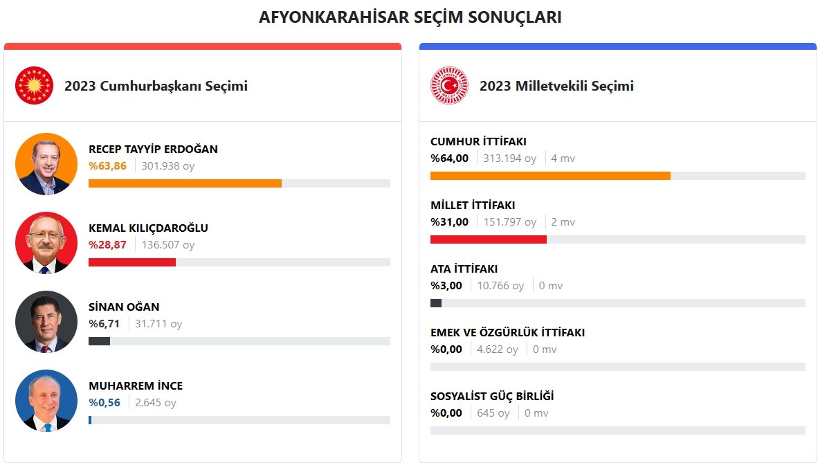 Afyonkarahisar Seçim Sonuçları 2023
