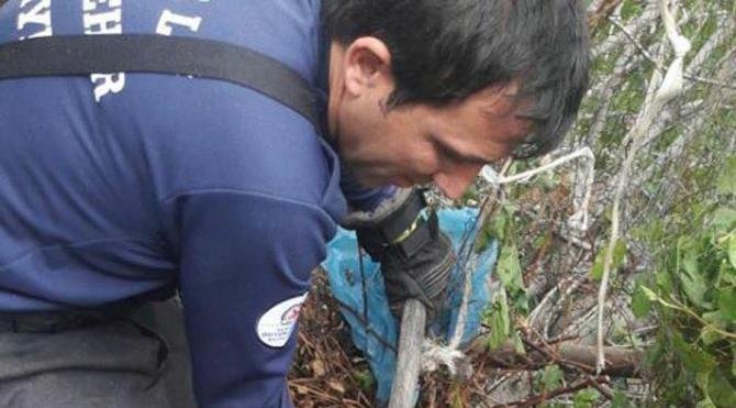 DENİZLİ'nin Buldan İlçesi Turan Mahallesi'nde, girdiği kuru ağaç kütüğünde sıkışan yavru köpeği itfaiye ekipleri kurtardı.
