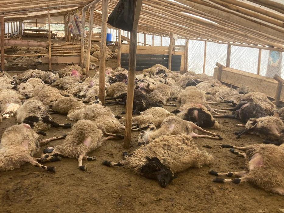 Gürültüyü duyarak ağıla girenler, gördüğü manzara karşısında şok oldu. 200 koyununun öldüğünü belirten ağıl sahibi Önder Şahin, zararının yaklaşık 500 bin lira olduğunu söyledi.