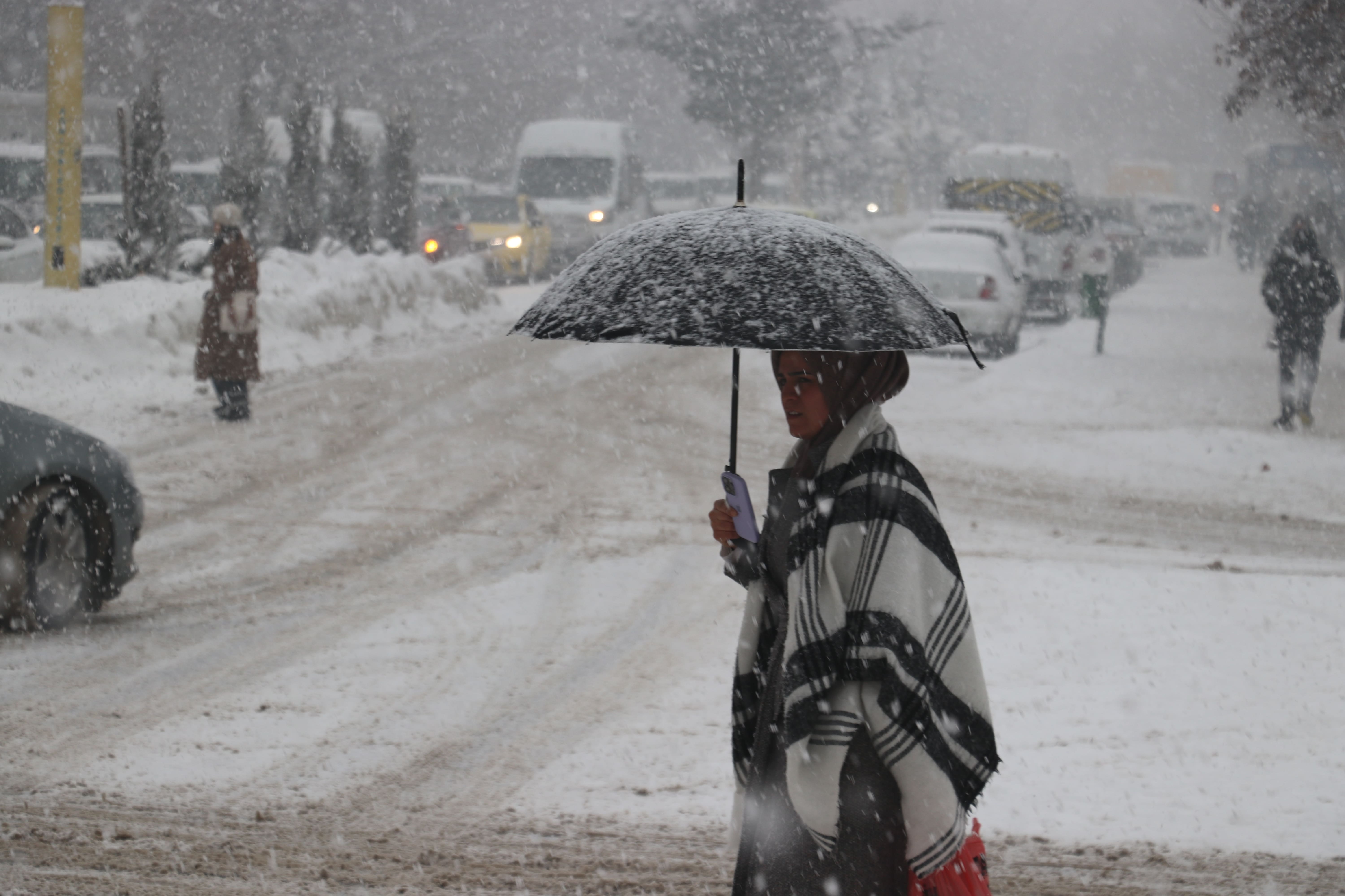 Yoğun kar yağışıyla cadde ve sokaklar beyaza büründü.