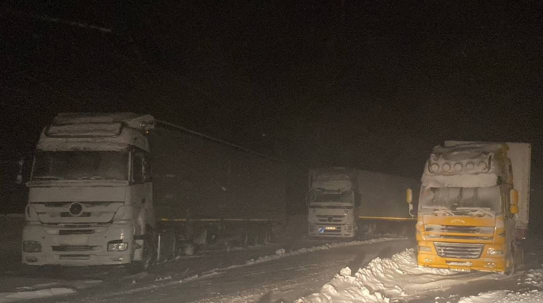Doğubayazıt ile Çaldıran ilçelerini birbirine bağlayan Tendürek geçidinin 2 bin 400 rakımlı Somkaya köyü mevkisinde olumsuz hava koşulları nedeniyle çok sayıda tır yolda kaldı.