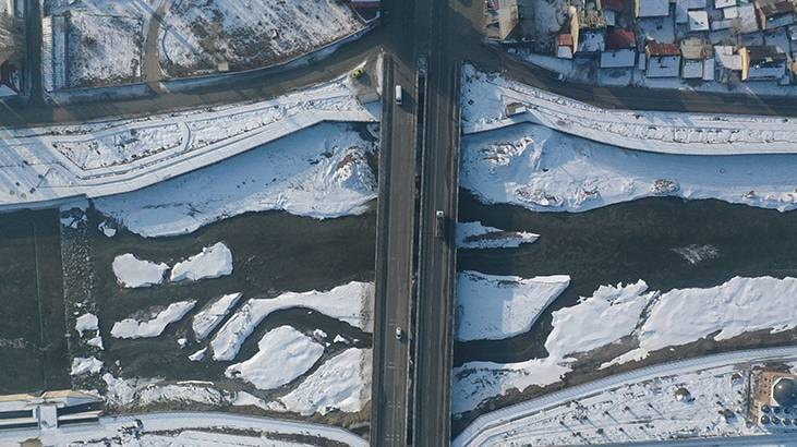 İş yerleri ve araçların camları da buzla kaplanırken, bazı vatandaşlar araçlarını soğuktan korumak için üzerini battaniye ve brandayla örttü. Sisle kaplanan şehir, buz kütleleriyle birleşen Murat Nehri ise dronla görüntülendi.