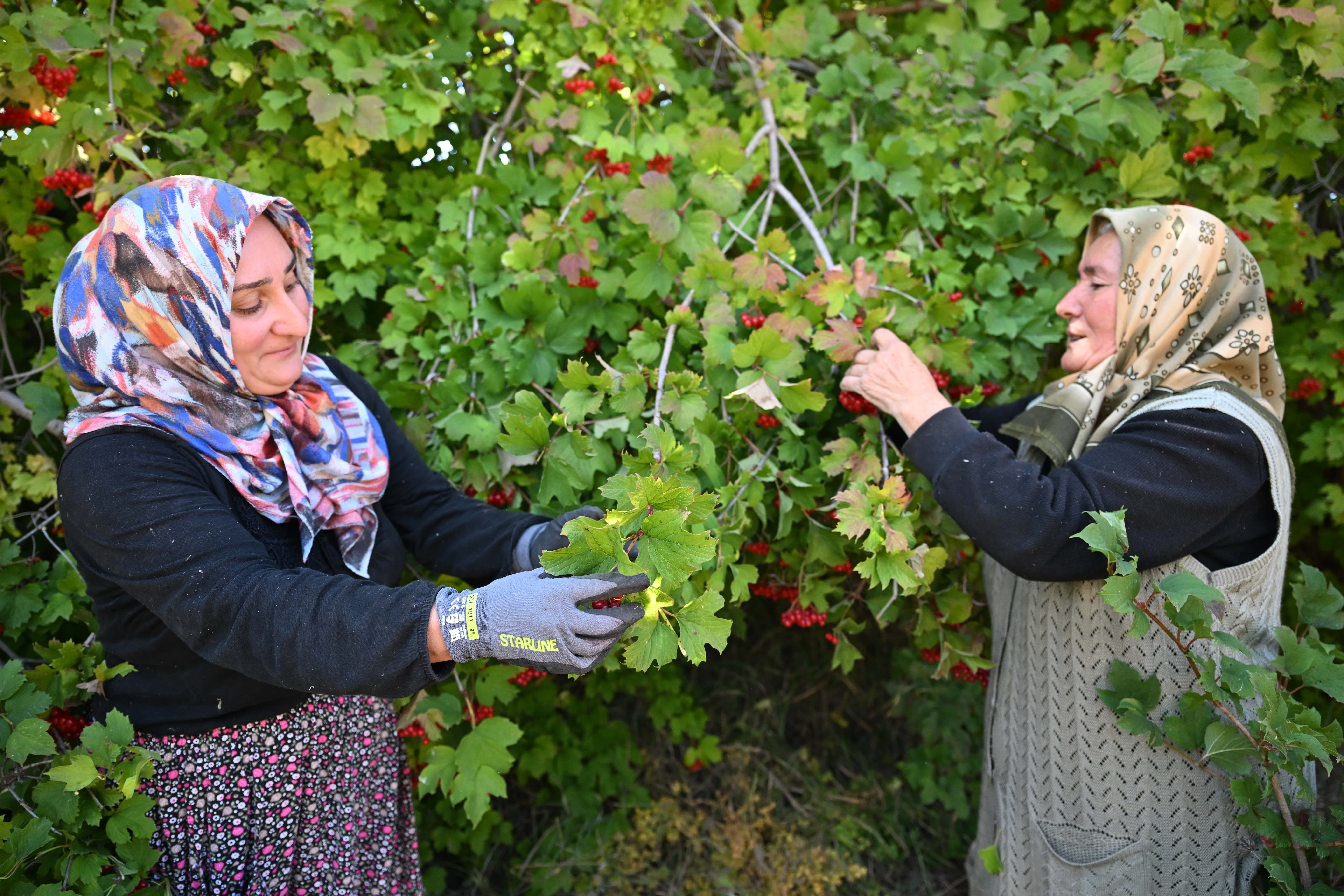 Kayınvalidesi ve kayınbabasıyla gilaburu hasadı yapan Fatma Şimşek de ekim itibarıyla gilaburu toplamaya başladıklarını, hem meyvesini hem de salamurasını sattıklarını ifade etti.