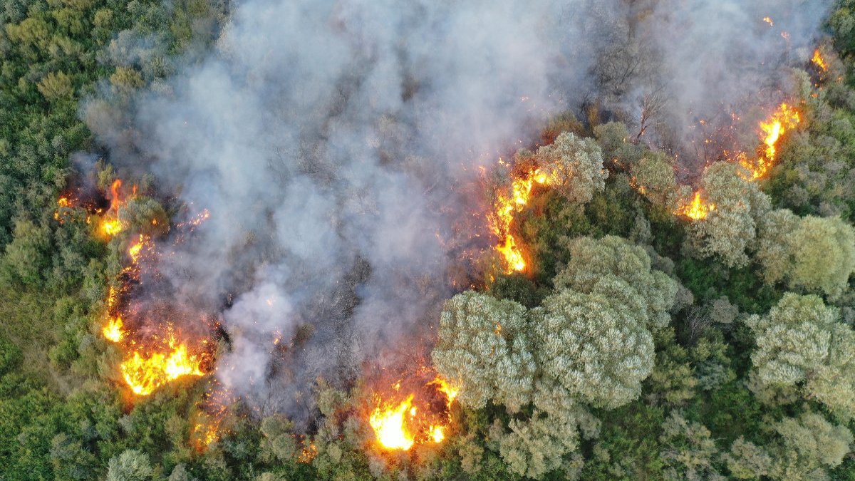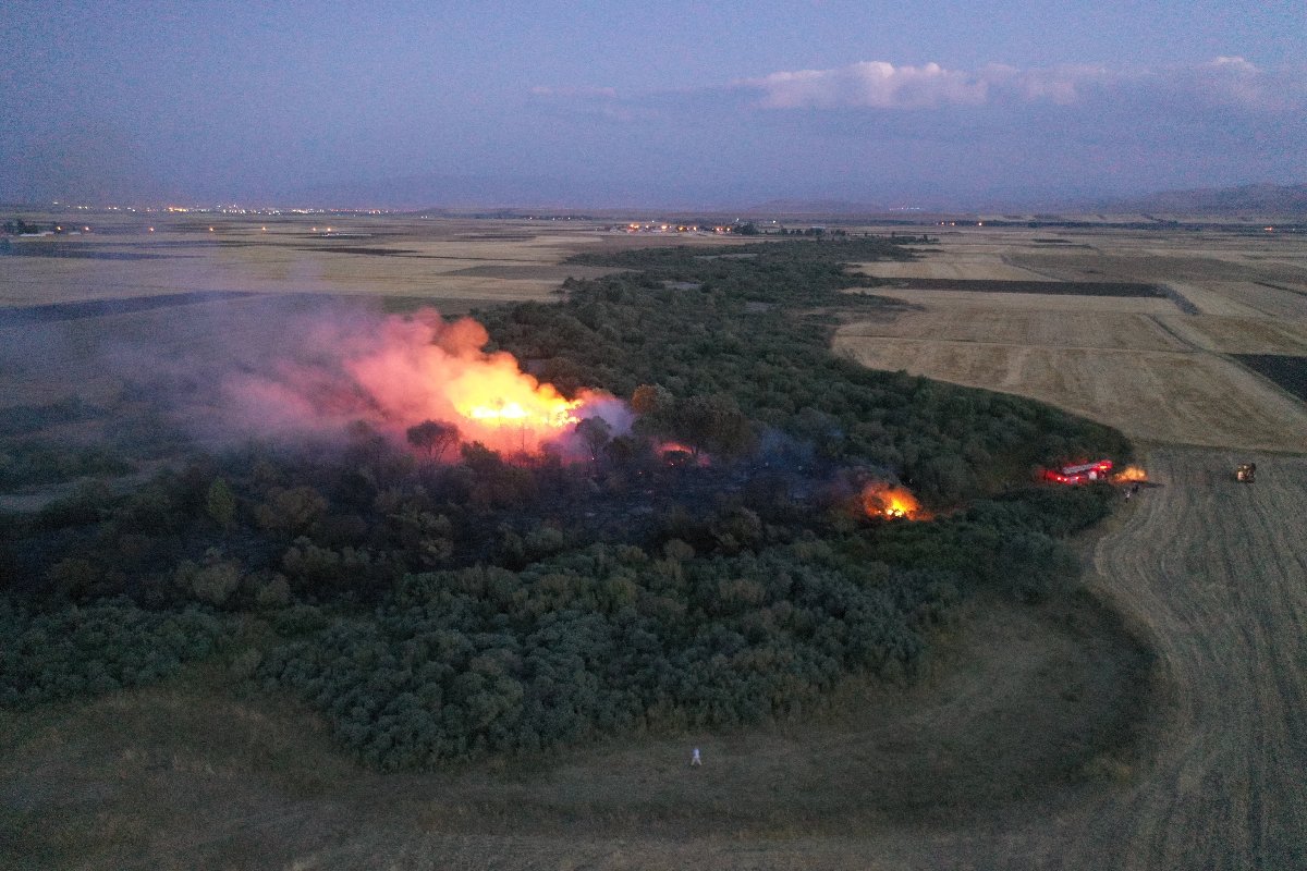 Soğutma çalışmalarının devam ettiği bölgede, geniş bir alan zarar gördü. (AA)