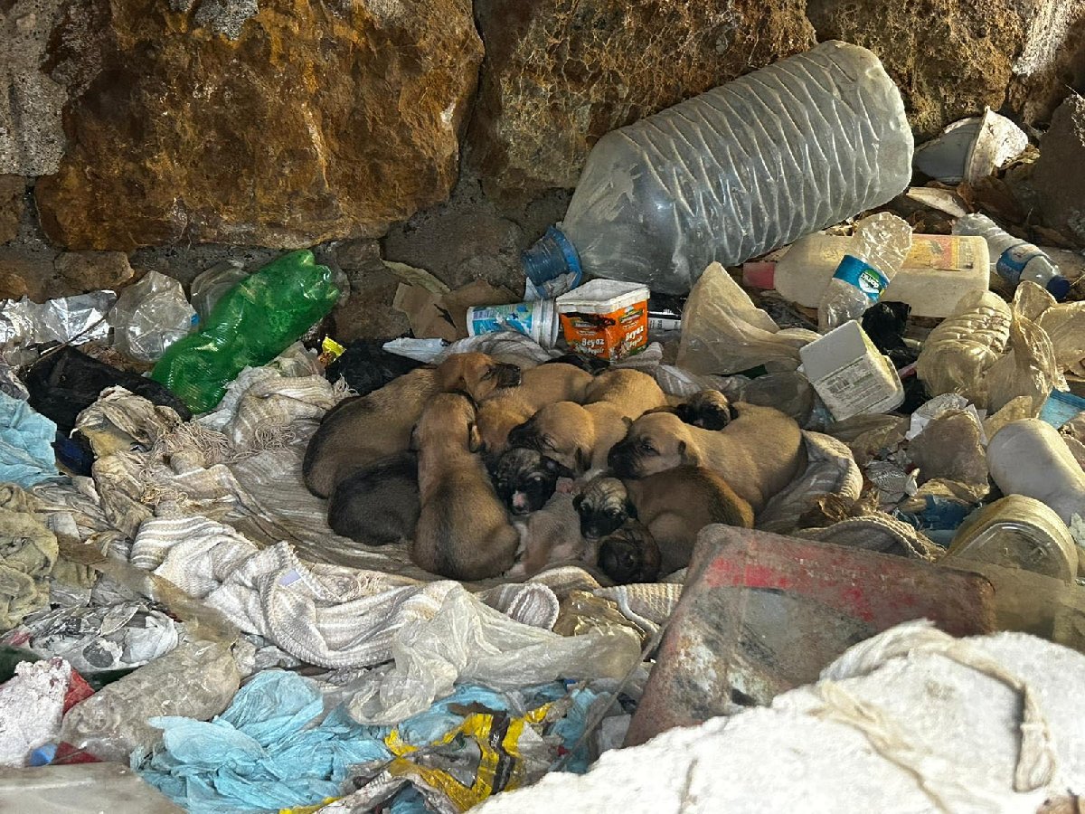 Eskişehir'in Beylikova ilçesinde, ağzı bağlı bir çuvala konularak araziye bırakılan 7 yavru köpek ölüme terk edildi. Demir yolu işçilerinin sesleri duyması üzerine kurtarılan köpekler, yeni doğum yapmış başka bir köpeğin yanına götürüldü.