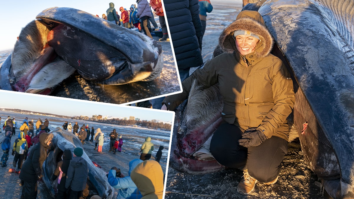 Alaska'da Cook Inlet bölgesinde karaya vuran dev balina yöre halkının sahile akın etmesine neden oldu.