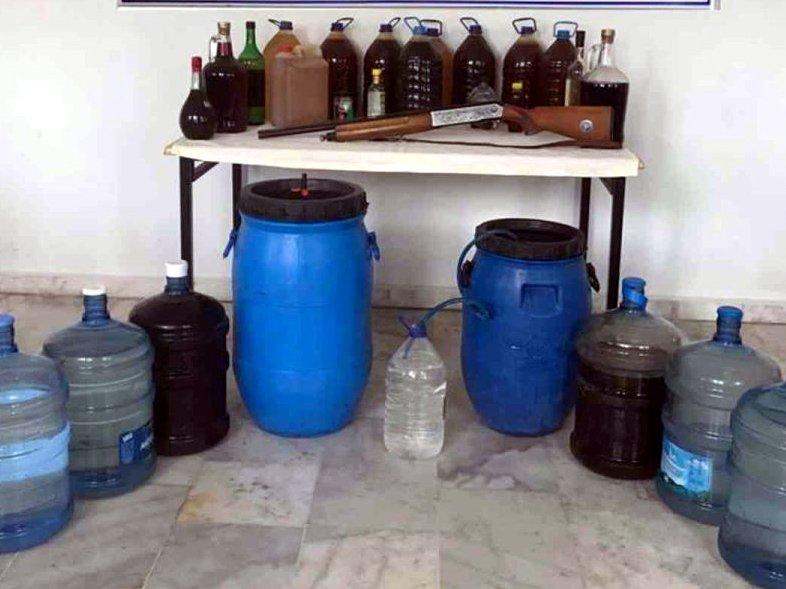 Ürettiği el yapımı şarap ve rakıları sattığı belirlenen M.G.'nin ikametgah ve ahırında yapılan aramalarda 180 litre el yapımı şarap ve 75 litre el yapımı rakı, anason ve ruhsatsız av tüfeği ele geçirildi.