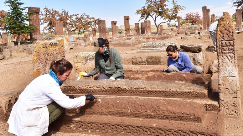 Van Yüzüncü Yıl Üniversitesi Sanat Tarihi Bölümü Dr. Öğr. Üyesi Mehmet Kulaz'ın bilimsel danışmanlığında yürütülen çalışmalarda hem yeni mezarlar ortaya çıkarılıyor hem de kırılan, tahrip olan mezar taşları restore ediliyor.
